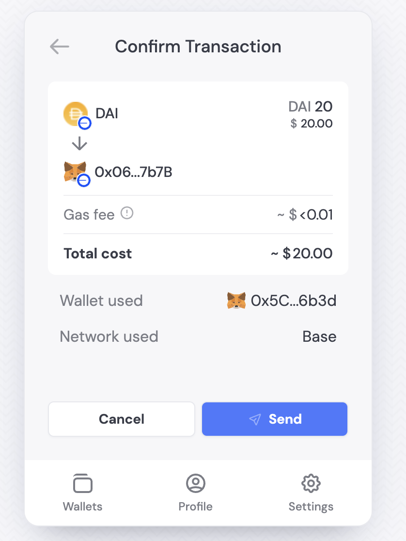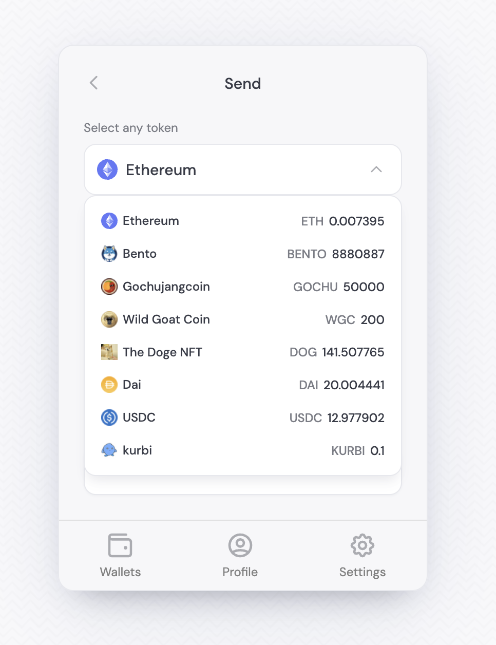 Simply add the Dynamic Widget or Dynamic Embedded Widget to your dapp and the Send Token UI will be available to your users.End user experience